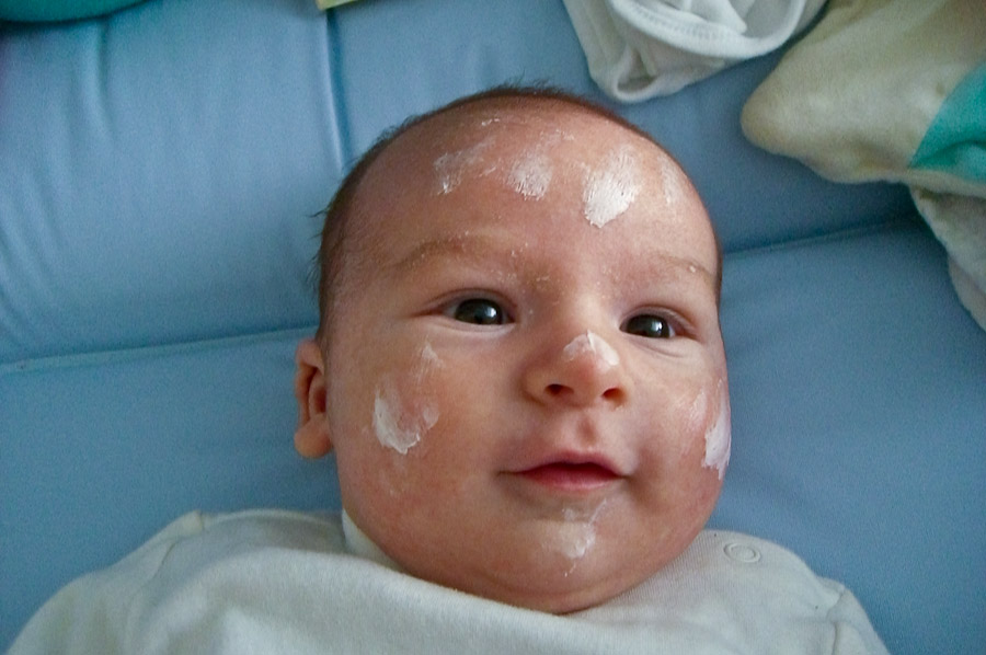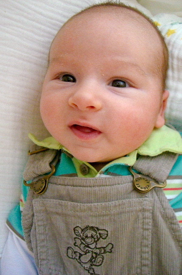 endlich gibt es mal wieder Neuigkeiten aus Pauls Welt. Letzte Woche stand ganz im Zeichen des Milchstaus. Das ist vielleicht ein Mist. Ich wurde nicht satt und Mama hatte dolle Schmerzen und Fieber. Dazu kam noch, dass Papa eine Erkältung hatte. Leider fiel durch den Verkehrsstau in Mamas Brust auch unser Ausflug an die Ostsee aus. Aber zum Glück, ist das jetzt Vergangenheit! Mama geht es wieder gut, Papa hat nur noch eine kleine Schnupfnase und ich werde wieder richtig satt. Jetzt weiß ich erst mal, wie gut ich es habe und wie bequem eine solche Vollpension ist. Ich habe mir als kleines Dankeschön überlegt, meinen Eltern am Abend etwas mehr Zeit für sich zu gönnen. Darum werde ich jetzt immer von 19.30 bis 02.30 Uhr durchzuschlafen. Die letzten zwei Nächte hat es schon ganz gut geklappt. Ansonsten wachse und gedeihe ich vorzüglich, wie ihr ja auf den Bildern sehen könnt.