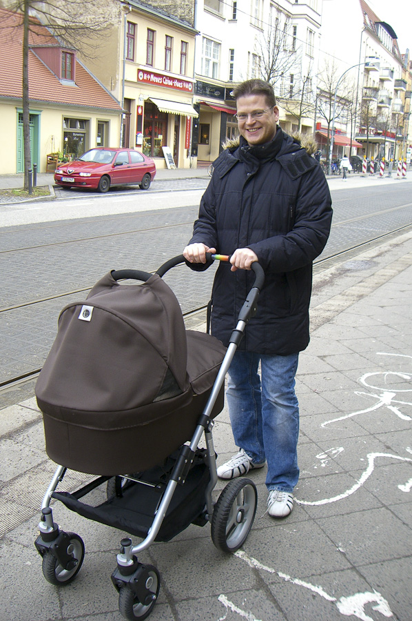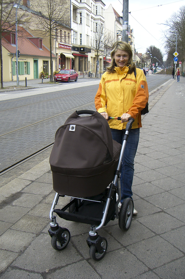 heute wurde es Zeit der Welteroberung ein Schritt näher zu kommen. Also wurde es Zeit für einen ersten Erkundungspaziergang durch Babelsberg. Zunächst mussten allerdings einige teilweise unangenehme Vorbereitungen getroffen werden. Dazu wurde ich zunächst stadtfein gemacht und gewaschen. Diesen Akt konnte ich bei der darauf folgenden Fütterung zu mindestens teilweise wieder zu nichte machen :-). Dann musste natürlich mein neues Mobil startklar gemacht werden und ich wurde wahnsinnig dick verpackt, als ob es an den Nordpol geht. Aber dann ging es los! Schade nur, dass ich ab diesem Zeitpunkt einen Filmriss habe, denn mich hat einfach die Müdigkeit übermannt. Naja wenigstens gibt es einen Fotobeweiss von meinem ersten Stadtspaziergang.
