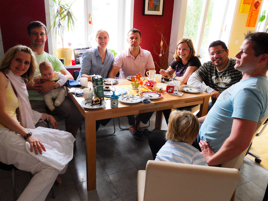 Heute ging es gleich richtig schön weiter. Vormittags haben wir uns mit Anne, Doreen, Marco, Jeannette und Enrico zum Brunchen getroffen. Das Blöde war, dass ich am Morgen schon so viel gespielt hatte, dass ich das ganze Event verpennt habe :-(. Aber am Nachmittag ging es ja mit dem Besuchen weiter. Und da musste ich schließlich ausgeschlafen sein. So war es dann auch, das ich den Kaffeebesuch von Jessi, Ötzi, Nicole, René, Sami, Ivonne und Tino im Wachzustand erlebt habe. Im Nachhinein hat mich das eher geärgert. Mama hatte nämlich lecker Kuchen gebacken und ich habe nichts abbekommen!!! Frechheit! Zur Strafe werde ich das nächste Mal einfach wieder schlafen. Bis auf diesen Zwischenfall war es also ein rundum gelungenes Wochenende.